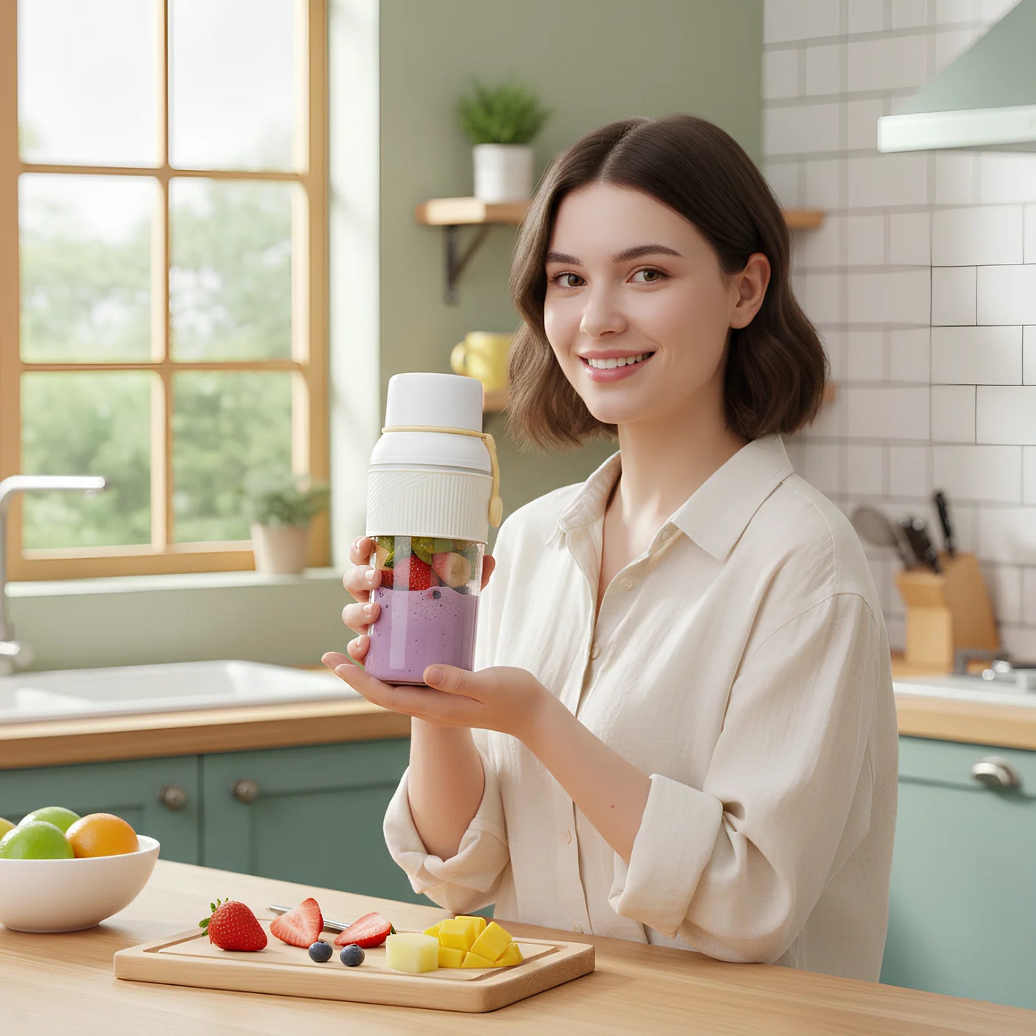 The Smart Avantage™ Fresh Blend – Portable Electric Juicer Cup is designed for people who love fresh and healthy drinks anytime, anywhere. With its powerful blending motor and compact design, you can easily make smoothies, fresh juices, or protein shakes in seconds. Simply add your favorite fruits, press the button.